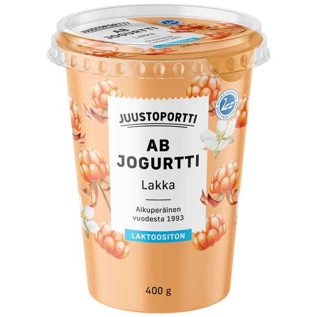 Hjortron från myrmarkerna i norr är en av de äldsta smakerna i vår yoghurtfamilj, det är också en av våra favoritsmaker. Juustoporttis AB-yoghurtar är tjockt sammetslena, de har en utsökt smak och tillverkas av finländsk mjölk. Familjeföretaget Juustoportti har framhävts som en bra arbetsgivare och en nyskapare inom den traditionella branschen, genom att bland annat vara det första mejeriet i Europa som tilldelades certifikatet Welfare Quality® som mäter djurens välbefinnande. I mer än 30 år har Juustoportti skapat ett nytt fast jobb varje månad.