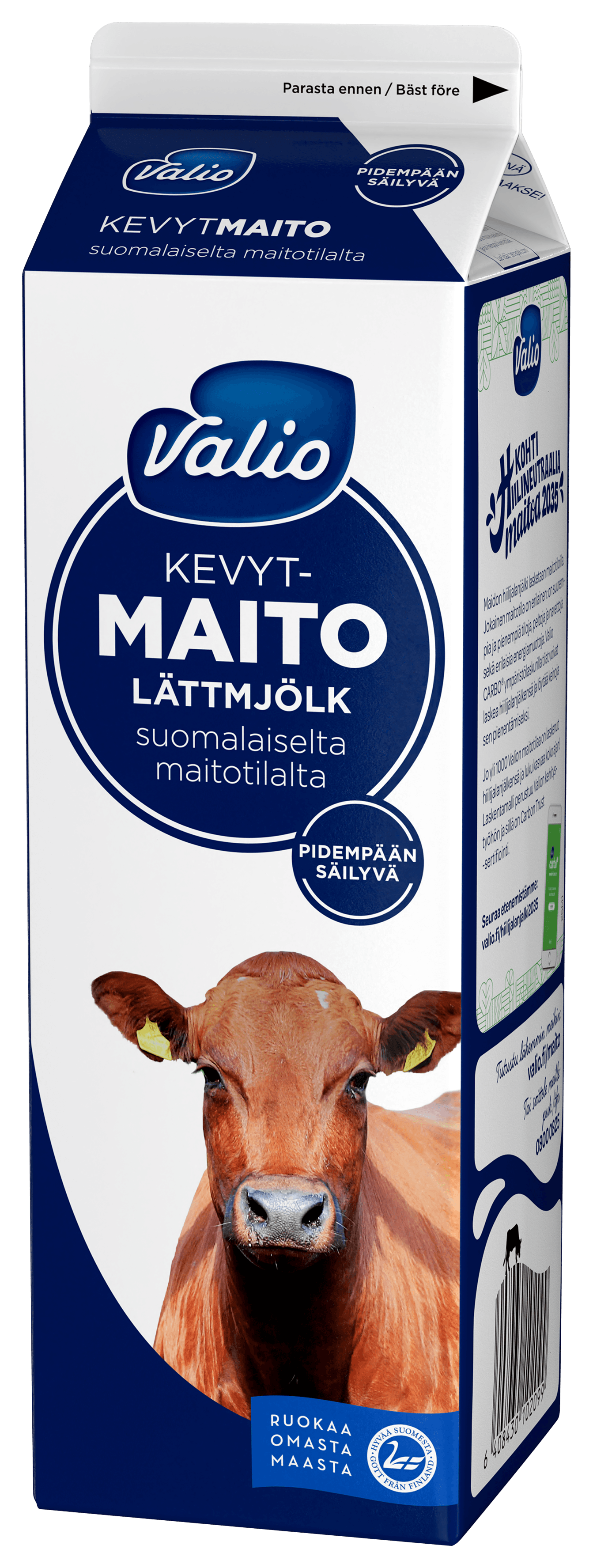Valio semi-skimmed milk is a refreshing drink! Use for coffee, cooking or baking. Valio semi-skimmed milk has a fat content of 1.5%. Milk is naturally rich in calcium, vitamins B2 and B12 as well as high-quality protein.