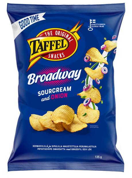 Taffel Broadway sourcream & onion flavoured chips 150g