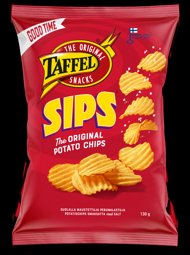 Taffel SIPS, the crinkled dreams, are made from only the best potatoes, salted and then fried in a high-quality vegetable oil to make them golden yellow and perfectly crispy. Double your experience with Taffel dips.
