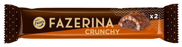 Fazerina är verklig chokladklassiker med fyllning som har varit mångas favorit alltsedan 1953. Stor Fazerina Crunchy chokladstång innehaller mjuk apelsintryffelfyllning överdragen med rispuffar och Fazers mjölkchoklad.